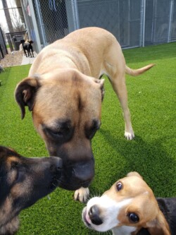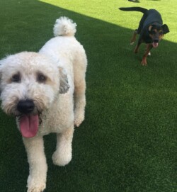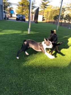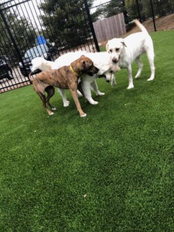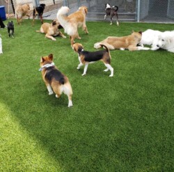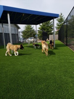 - Shaded, fenced outdoor play area has doggie swimming pools in the summer and is equipped with K-9 specific grass to create a fun and friendly environment!
